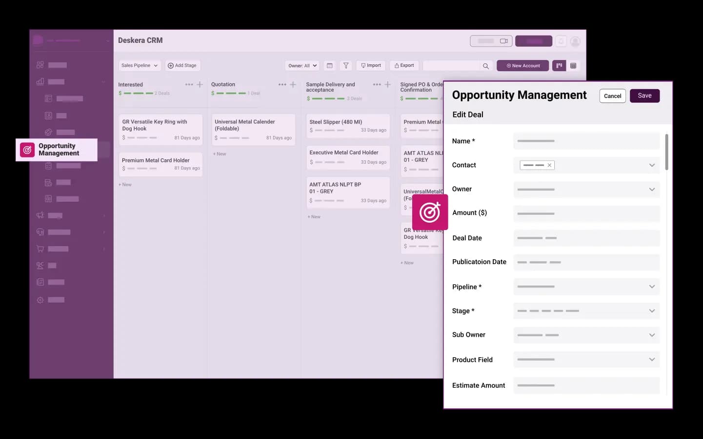 Opportunity management is a powerful tool to help your business grow. Easily track and manage leads and sales opportunities, assess their progress and create forecasts. Create custom opportunity stages to track leads as they move through your sales process. Leverage powerful insights to track performance and uncover opportunities for improvement. Utilize automated workflows to ensure that no opportunities slip through the cracks. Integrate with your existing data sources to sync data across your business. Seamlessly collaborate with team members and customers to identify and close more deals. Keep a detailed record of all customer interactions and communications.