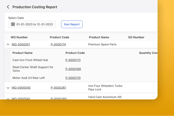Deskera MRP software for automotive business allows you to create customized reports and dashboards to monitor your production planning and costing activities.