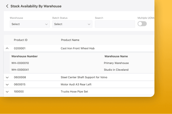 If your automotive business has multiple warehouses or storage locations, Deskera's ERP can manage and track inventory across all locations, optimizing stock distribution.