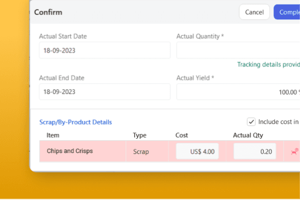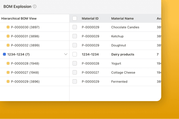 Efficiently manage complex food and beverage recipes and formulas with multilevel BoMs, ensuring precise ingredient measurements and consistent product quality with our food manufacturing software.