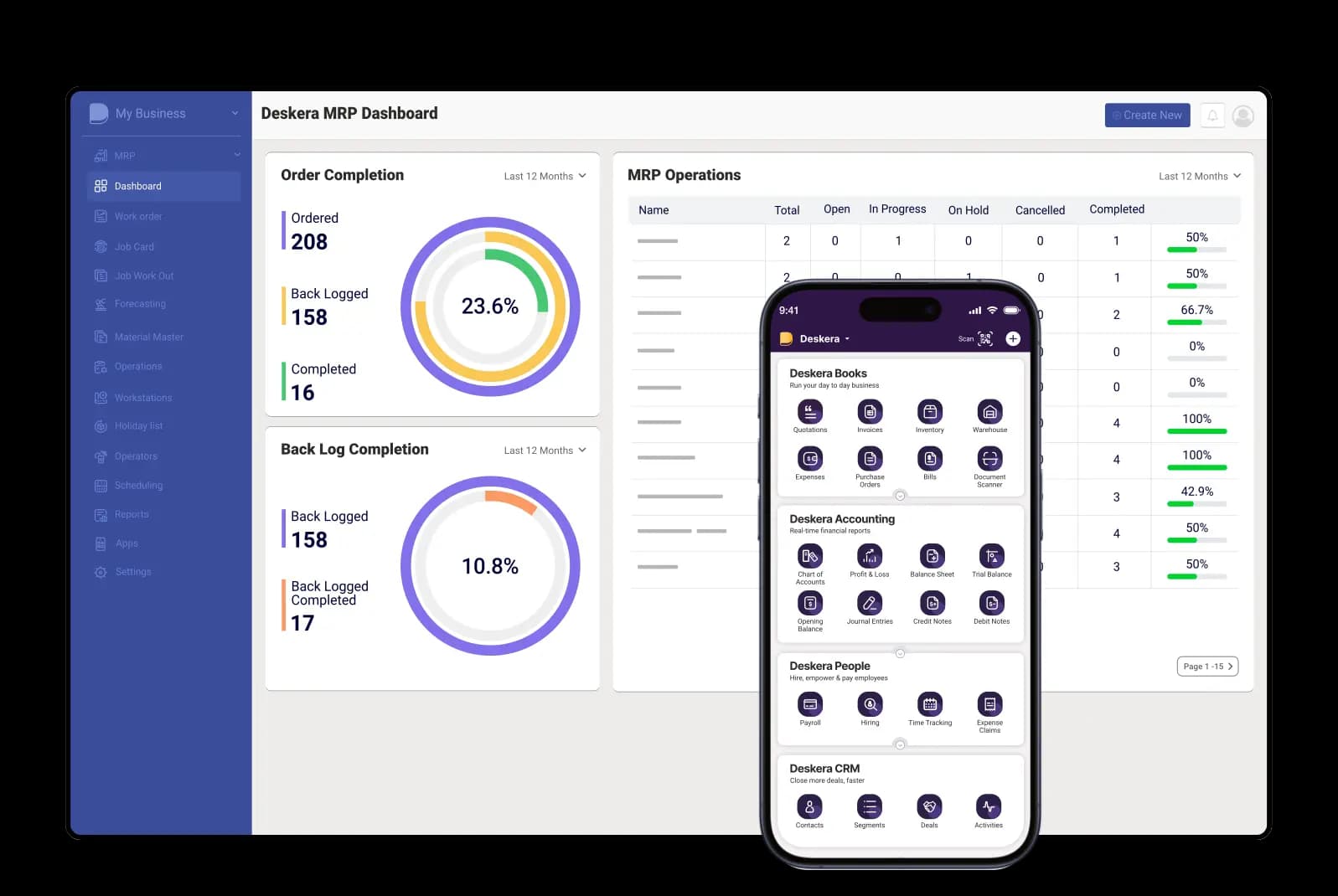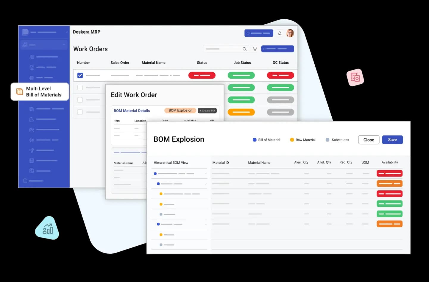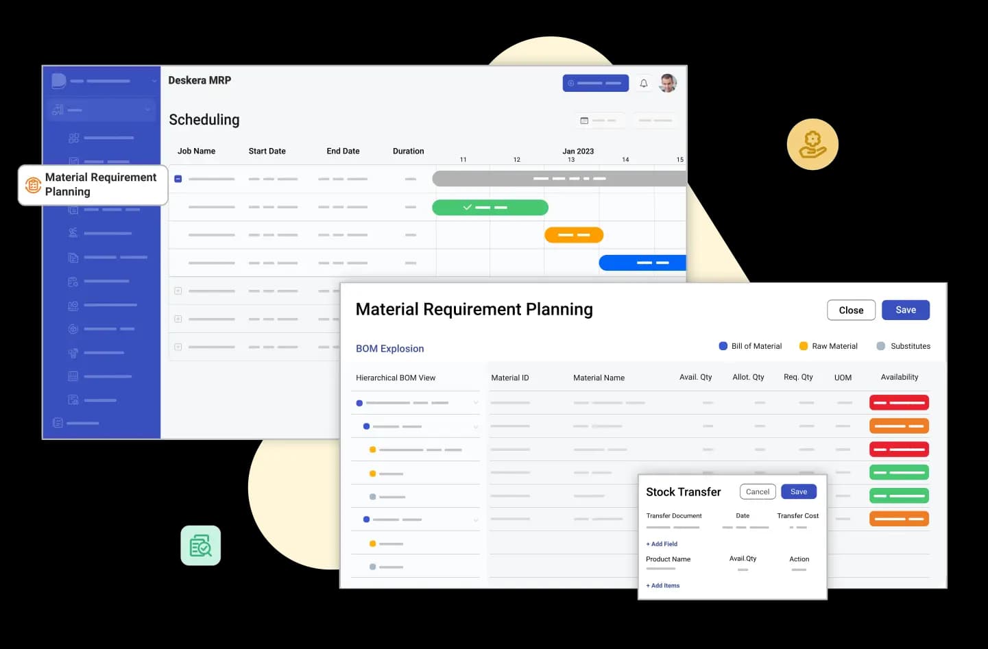 Calculate production costs, track inventory levels, plan purchasing and production needs, and streamline your operations for maximum efficiency with Deskera MRP.