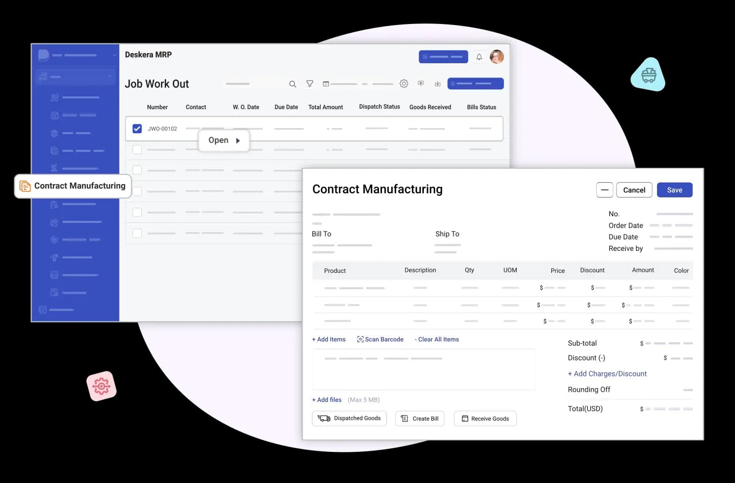 Automate the planning, scheduling, and tracking of outsourced production with integrated tools. Easily monitor the costs and progress of contract manufacturing jobs. Gain comprehensive visibility of the entire process from supplier selection to order fulfillment.