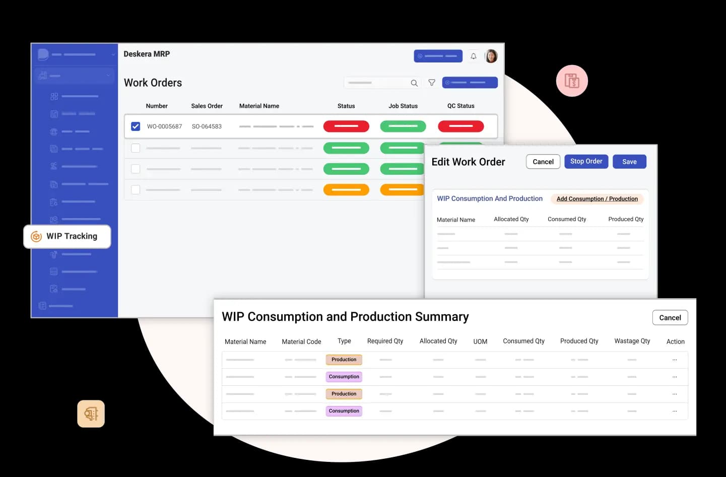 Track work-in-progress (WIP) with ease, monitor production progress and identify bottlenecks quickly with effective resources and materials tracking functionalities. Generate real-time reports to analyze estimate WIP levels.