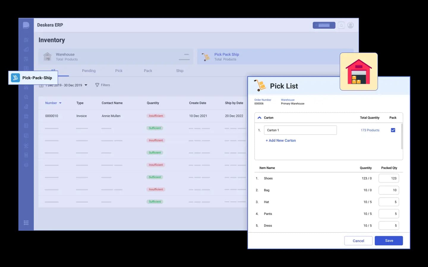 Pick, Pack, Ship provides an integrated solution for managing inventory and order fulfillment, allowing businesses to maximize efficiency and reduce labor costs. It enables real-time tracking of inventory, orders and shipments, streamlining warehouse operations and improving customer satisfaction.