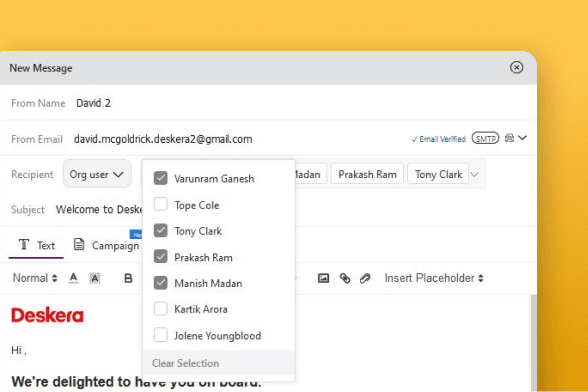 Deskera's solution fosters seamless collaboration among teams, departments, and locations within your organization. Say goodbye to the headaches of silos and disjointed communication. With Deskera, you'll enjoy a centralized platform that simplifies and streamlines collaboration, driving efficiency, and boosting productivity.
