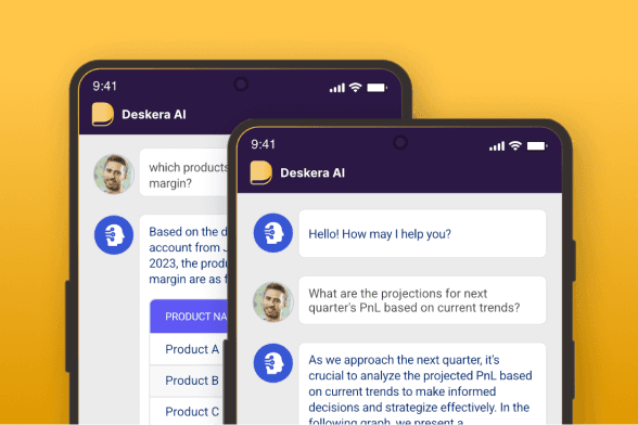 Deskera is here to arm you with actionable insights that drive informed decision-making. Our AI-powered analytics provide deep visibility into your business operations, empowering you to uncover key trends, identify opportunities, and mitigate risks. Bid farewell to uncertainty and embrace the power of Deskera, where actionable insights pave the way for unparalleled business acumen and a competitive edge in every decision you make.