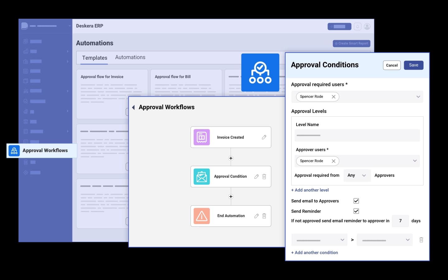With Deskera, you can easily create dynamic workflows that evolve with your organization's changing needs. Whether it's modifying approval processes, adjusting inventory workflows, or adding new functionalities, Deskera's agile and adaptive workflows ensure your systems work harmoniously, keeping pace with your business's growth. Say goodbye to rigid processes that slow you down and embrace the flexibility to navigate challenges and seize opportunities.