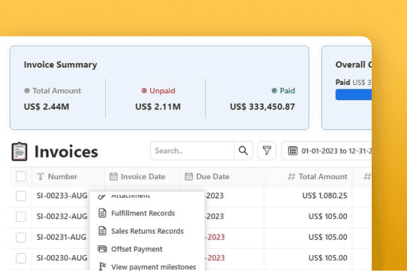 With Deskera's powerful solution, you'll gain a 360-degree view of your financial operations, giving you unparalleled visibility into your cash flow, expenses, and revenue streams. Real-time reporting and analytics provide you with valuable insights to make informed decisions, drive profitability, and remain in full control of your organization's financial health.