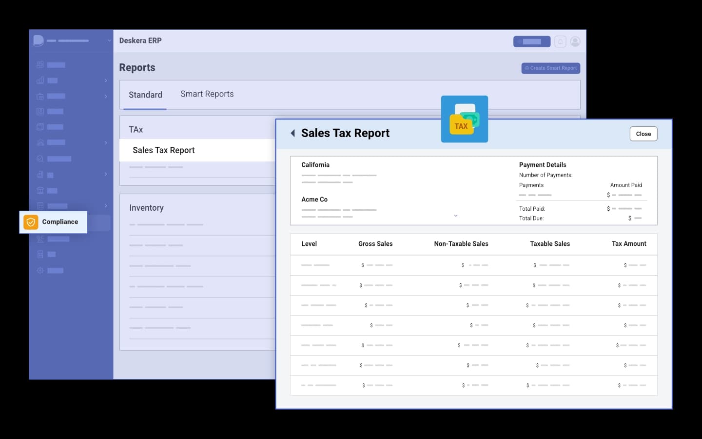With Deskera's powerful solution, you can say goodbye to the stress of keeping up with industry regulations. Our platform automates compliance processes, from tax compliance to financial reporting, ensuring you remain in full compliance at all times. No more worrying about costly errors or penalties.Experience the peace of mind that comes with knowing your financial operations are aligned with industry regulations.