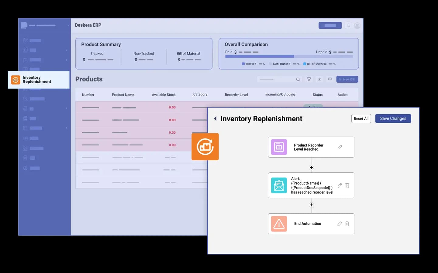 Monitor stock levels in real-time and maintain an optimal stock level with automated alerts. Leverage powerful analytics to identify trends, prevent stock-outs and set customized re-order levels. Get insights on stock availability and stock status for better decision-making. Streamline the entire inventory replenishment process.Inventory Replenishment allows factory workers to keep track of inventory levels and triggers automated purchase orders when stocks are running low. This ensures that there is always enough stock on hand to fulfill orders and helps prevent costly delays. This can also help reduce the amount of time spent manually managing inventory and can be used to track inventory levels for different locations and ensure stock is being distributed efficiently.