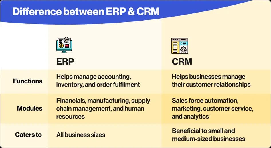 The difference between enterprise resource planning (ERP) and customer relationship management (CRM) software is often confusing to small business owners. Here’s a brief explanation of each type of software and how it can help your business. ERP software is designed to help businesses manage their core operations, such as accounting, inventory, and order fulfillment. ERP systems typically include modules for financials, manufacturing, supply chain management, and human resources. ERP software can be used by businesses of all sizes, but is typically most beneficial to larger organizations with complex operations. An example of ERP software is Deskera. CRM software, on the other hand, is focused on helping businesses manage their customer relationships. CRM systems typically include modules for sales force automation, marketing, customer service, and analytics. CRM software can be used by businesses of all sizes, but is typically most beneficial to small and medium-sized businesses that need to better manage their customer interactions. An example of CRM software is Salesforce.
